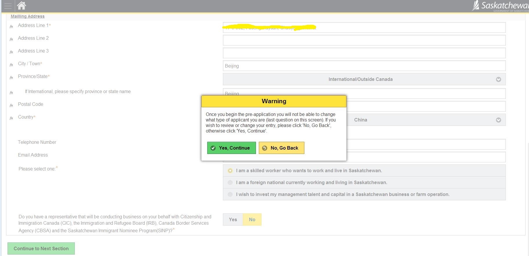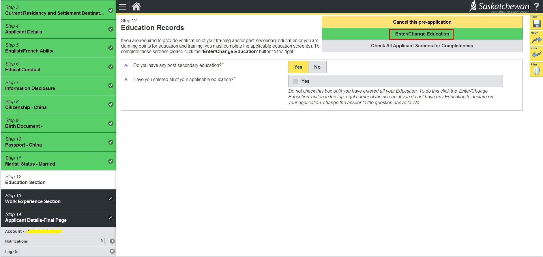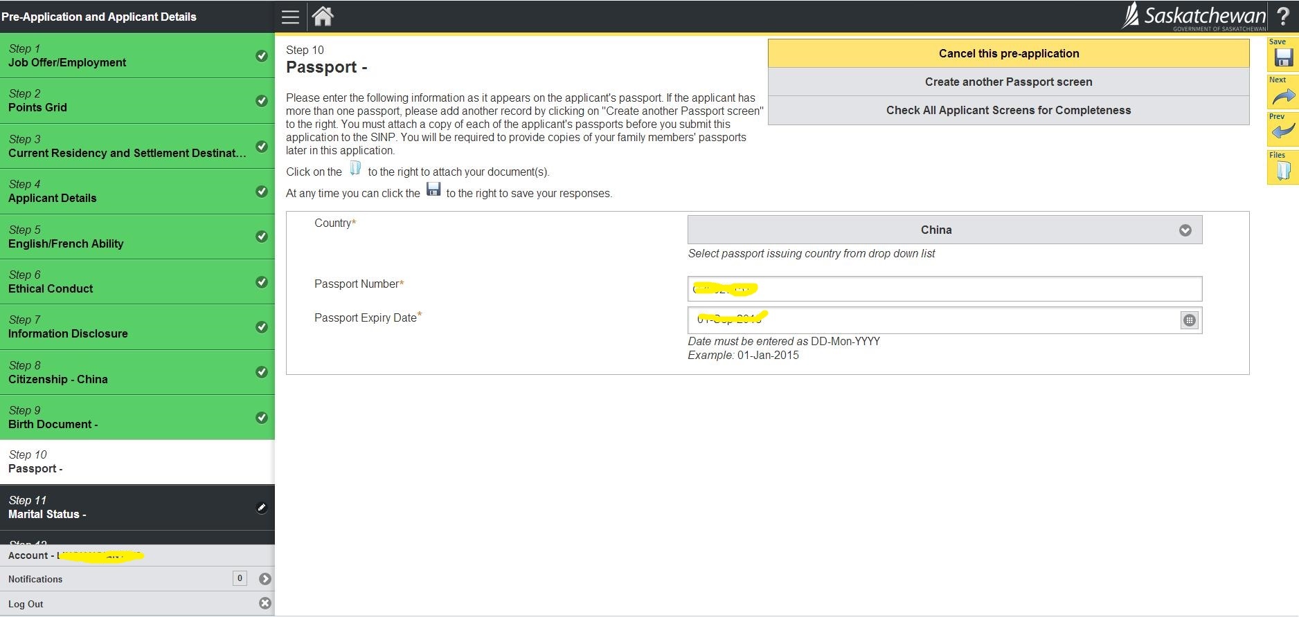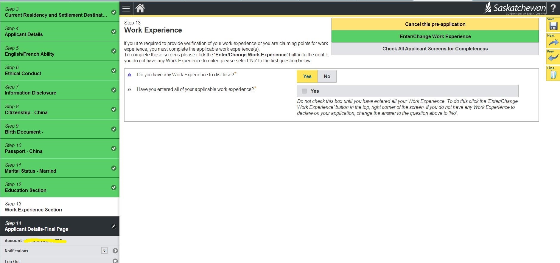 23.询问是否在萨省有亲属、是否申请过加拿大联邦或省提名; 然后Check All Applicant Screen for Completeness检查完整性