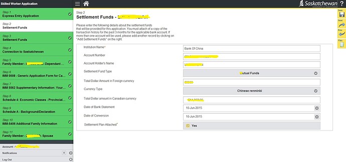 25.开始填写Application Screen, 这个界面有的项目是需要自己创建的,比如定居资金、家庭成员…