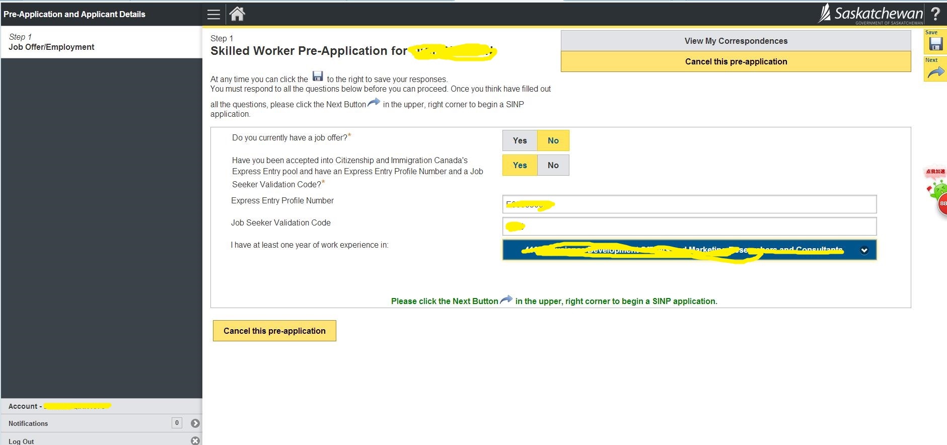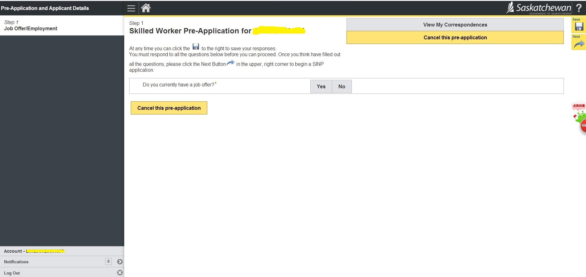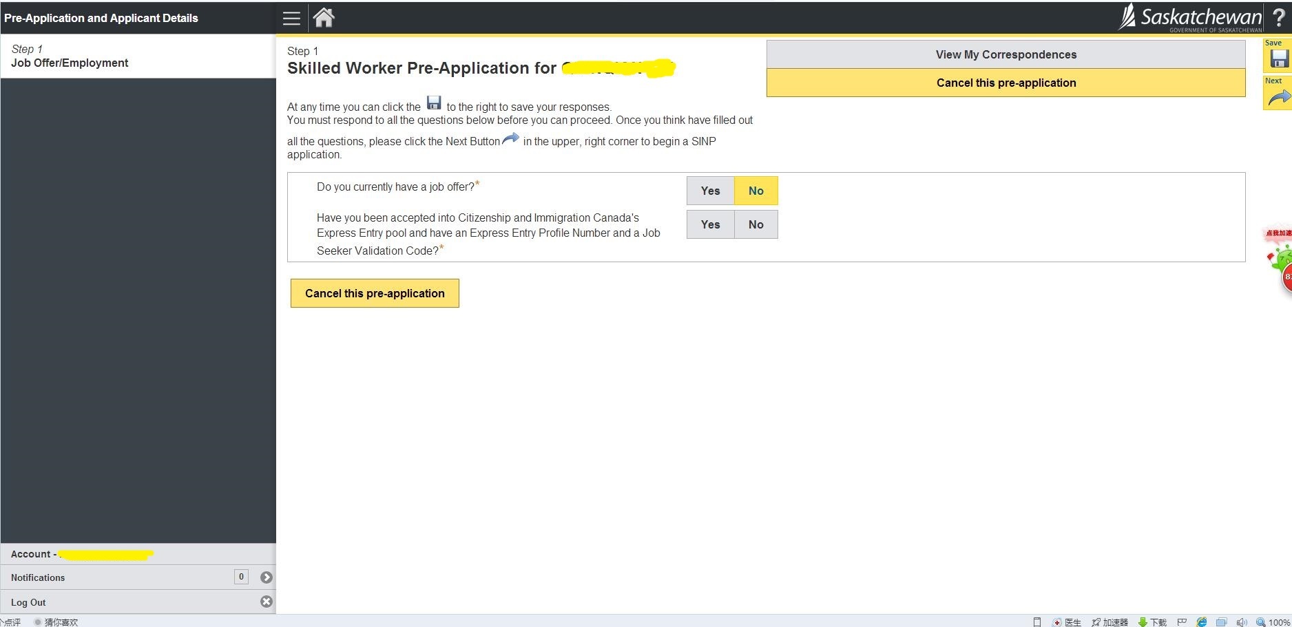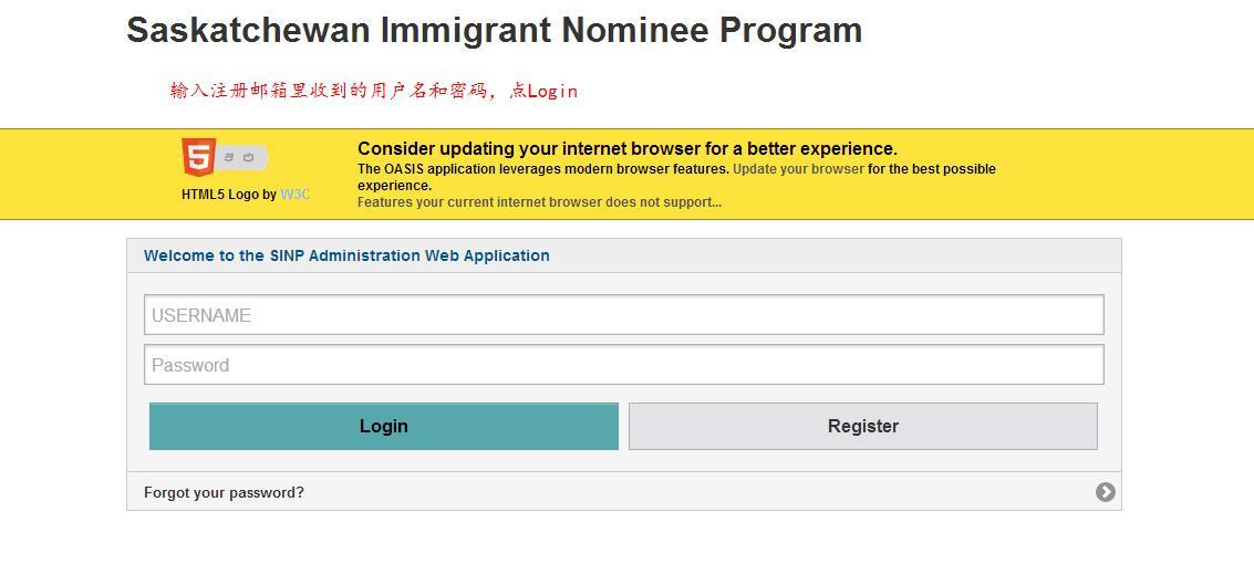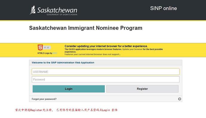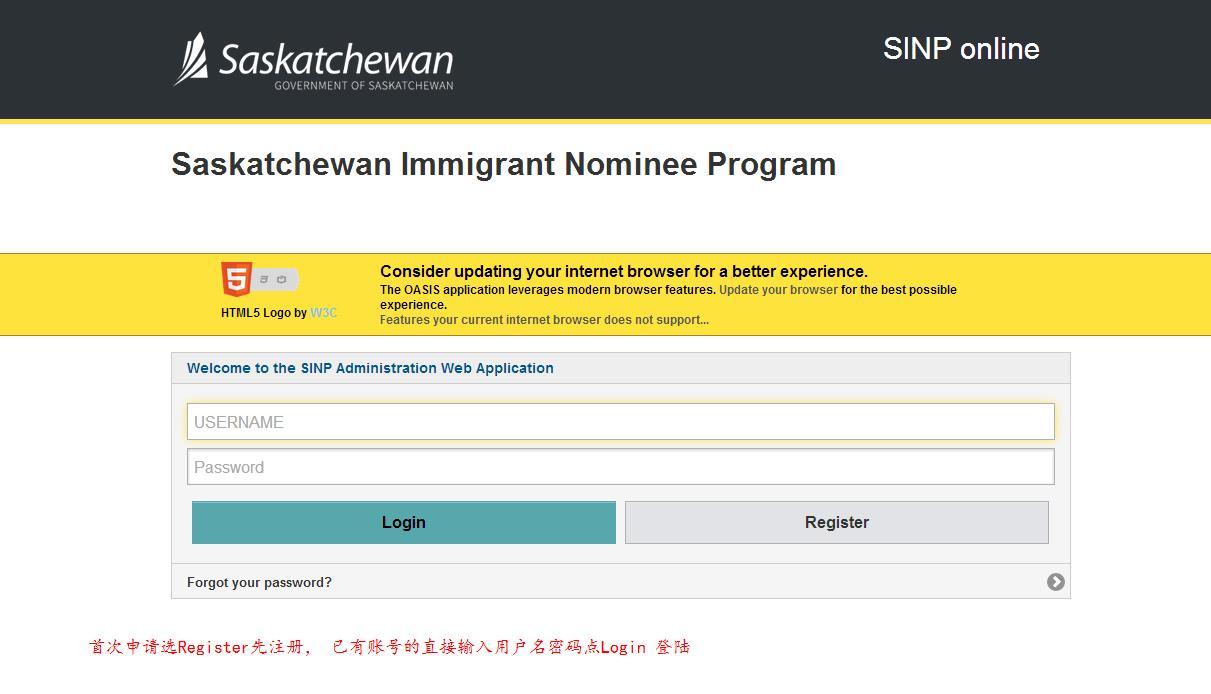 1.登陆萨省在线申请官网 https://immigration.saskatchewan.ca/apex/f?p=305:101:2080848562169