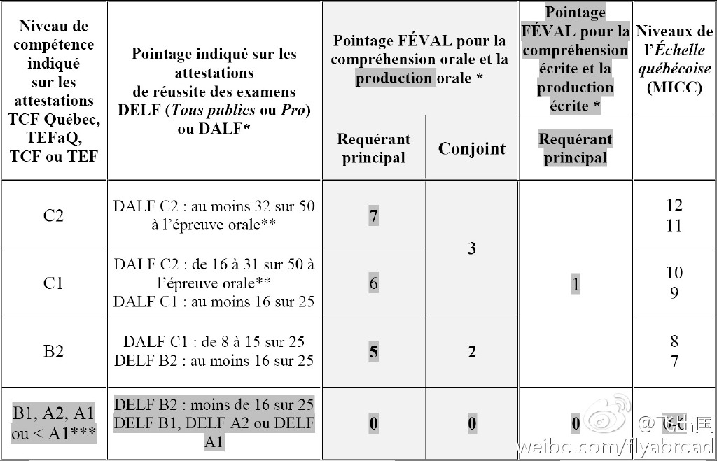 魁北克技术移民法语评分 B2 开始加分,听说加分高,读写加分低(B2到C2都是单项加1分),配偶达到B2也有加分。