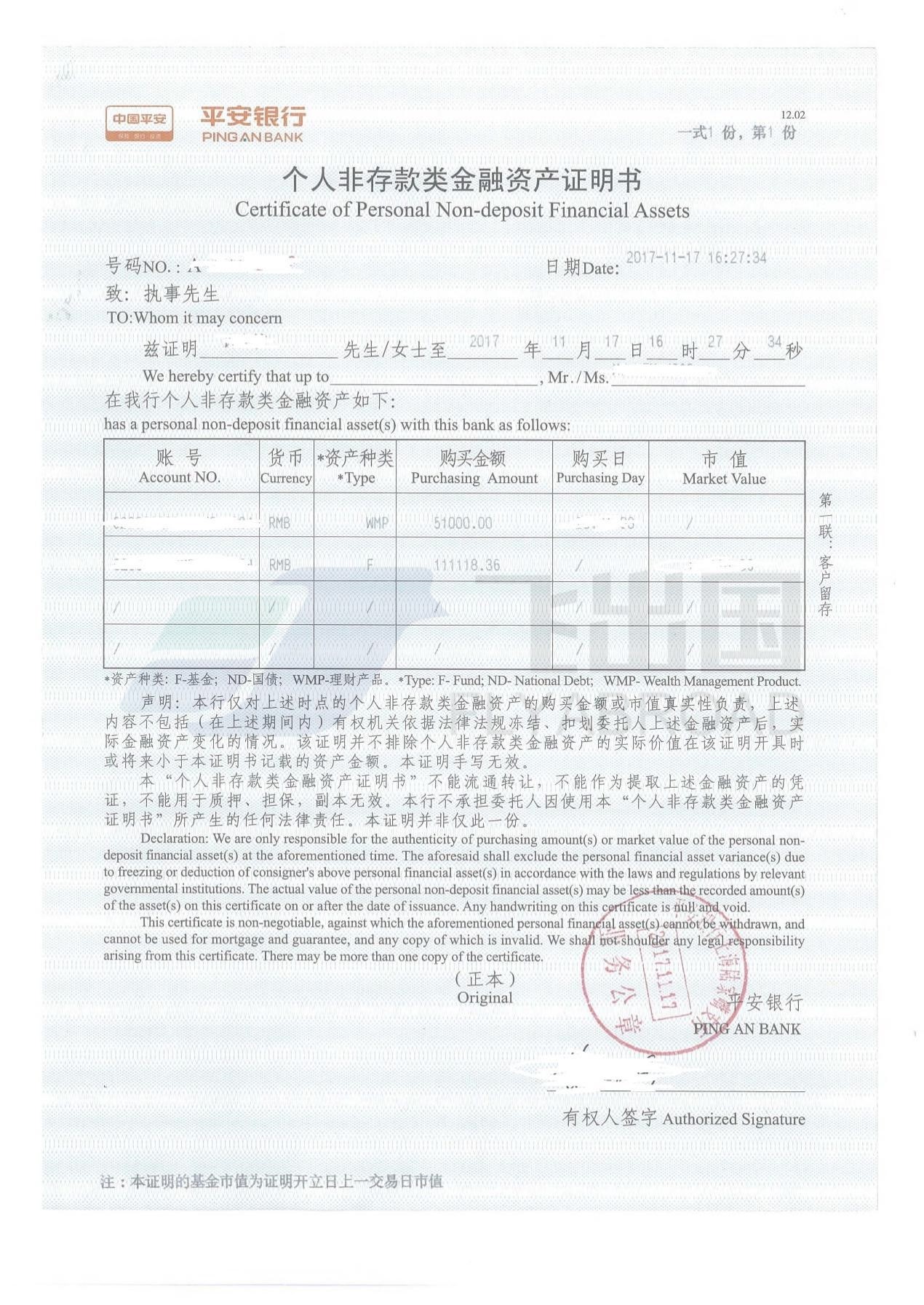 特殊情况:如果申请人只有基金证明,股票交割单,理财产品,房产证等其他财政证明材料,也可以提供,作为银行存款证明的辅助材料,或者替代银行存款证明。