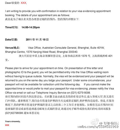 澳大利亚驻北京总领事馆签证处贴签程序-飞出国