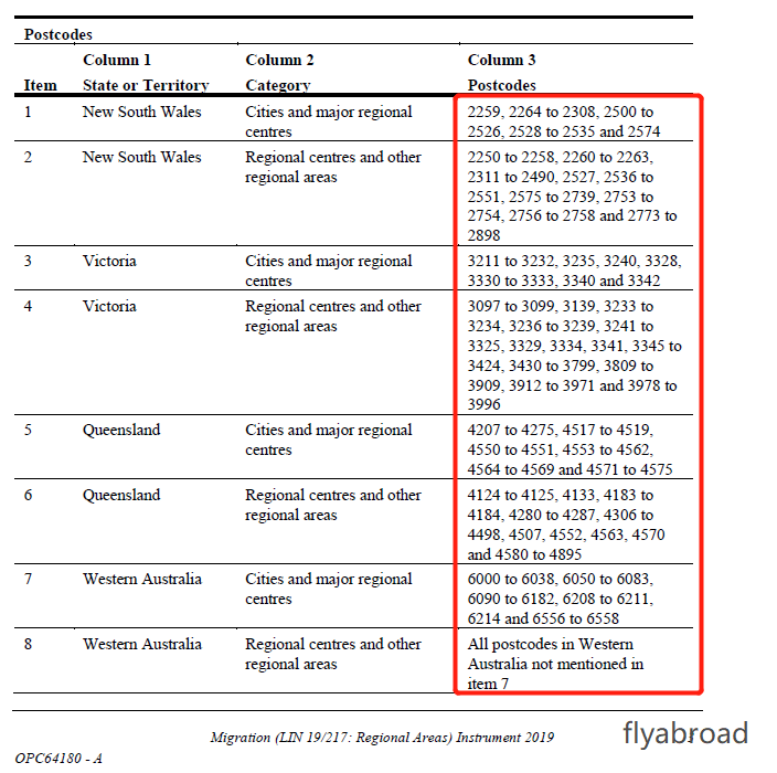 澳州移民局官方关于491签证偏远地区划分立法文件为Migration (LIN 19/217: RegionalAreas) Instrument 2019,文件中明确将偏远地区划分为Cities and Major Regional Centres与Regonal Centres and Other Regional Areas两类,至此,已经完全确认,澳洲除了悉尼,墨尔本和布里斯班,其他都属于偏远地区,除了491签证持有人届时将有更多的定居城市选择之外,在申请技术移民的时候,在这些偏远地区所完成的两年澳洲学习将可以按照偏远地区学习额外加分。