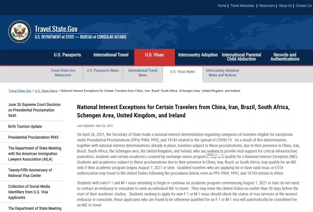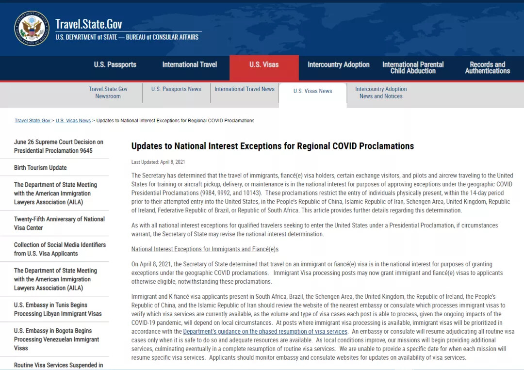 由于新冠疫情,美国发布四项总统公告暂停所有非公民在进入美国的14天内去过33个国家。它们针对中国的9984公告,针对伊朗的9992公告,针对申根区的10143公告,以及针对印度的10199公告。但根据美国国务院通知有一些人是可以进入美国的。我们来看看最新的美国入境政策。