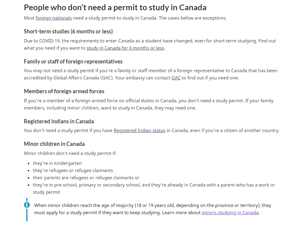 大多数外国人需要学习许可才能在加拿大学习。以下情况是例外。