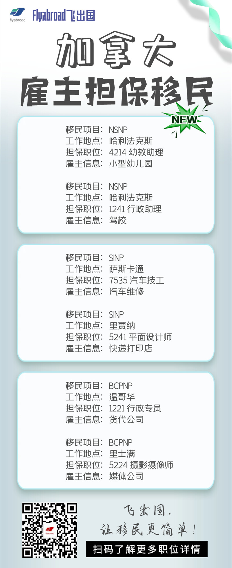 飞出国:最新雇主担保职位汇总,有意以下职位者请尽快与飞出国联系!