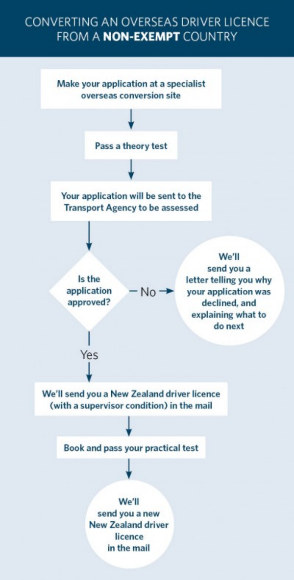 您需要先在专业的海外转换网站上申请,然后参加理论考试。然后您的申请将被发送到 Waka Kotahi NZ 运输局,以评估您的海外驾照,主要目的是检查以确保您的驾照是真实的并且没有以任何方式被篡改。