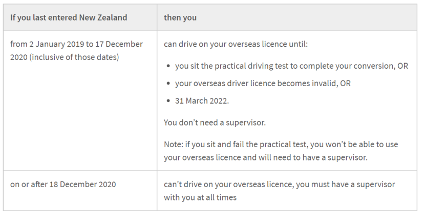如果打算留在新西兰,最好将海外驾照转换为新西兰驾照。根据您上次进入新西兰的时间,您只能使用海外驾照驾驶12或24个月。
