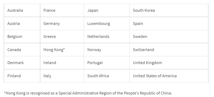 一些国家要求与新西兰相似的驾驶技能和许可制度。这些国家被视为豁免国家:
