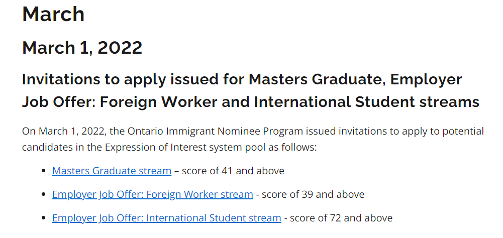 2 月 28 日,安大略省移民提名计划(OINP) 邀请了 173 名博士研究生流的移民候选人。要获得资格,候选人需要至少 16 分的最低EOI 分数。