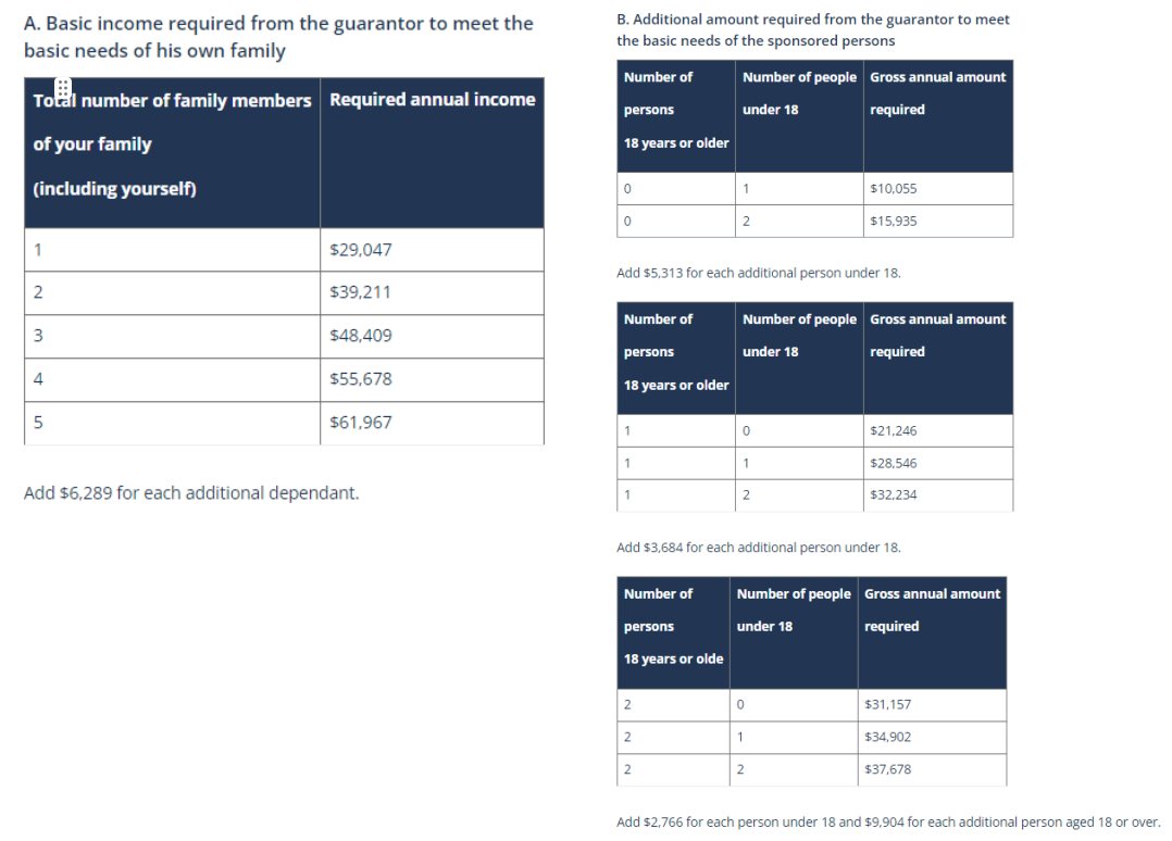 - 对于居住在魁省以外的担保人,需要承诺为申请人提供20年的经济支持
