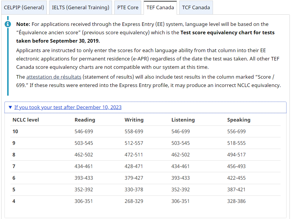 - 法语水平至少达到CLB7,英语水平至少达到CLB6;